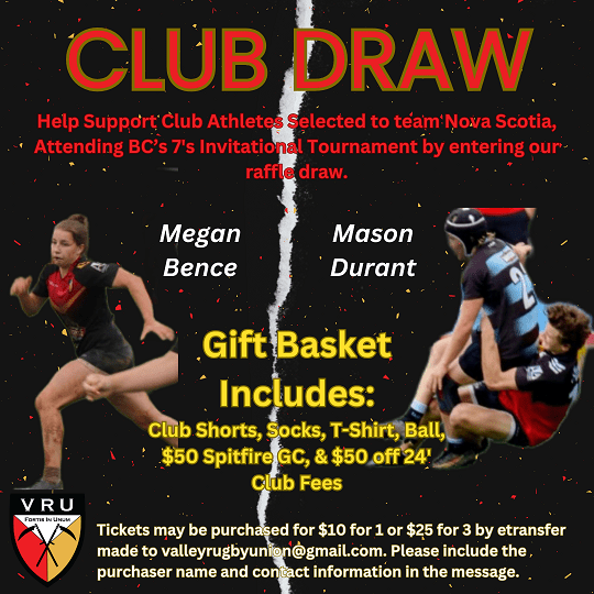 Your support not only enters you into the draw for these fantastic prizes but also contributes to Meg and Mason’s journey in representing VRU at the prestigious BC’s 7’s Invitational Tournament! Let’s show our VRU spirit and make this experience unforgettable for them!